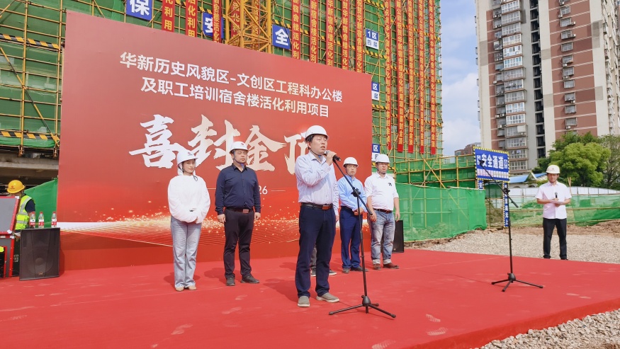 封頂大吉!華新歷史風(fēng)貌區(qū)·文創(chuàng)區(qū)工程科 辦公樓及職工培訓(xùn)宿舍樓活化利用項目 主體結(jié)構(gòu)封頂